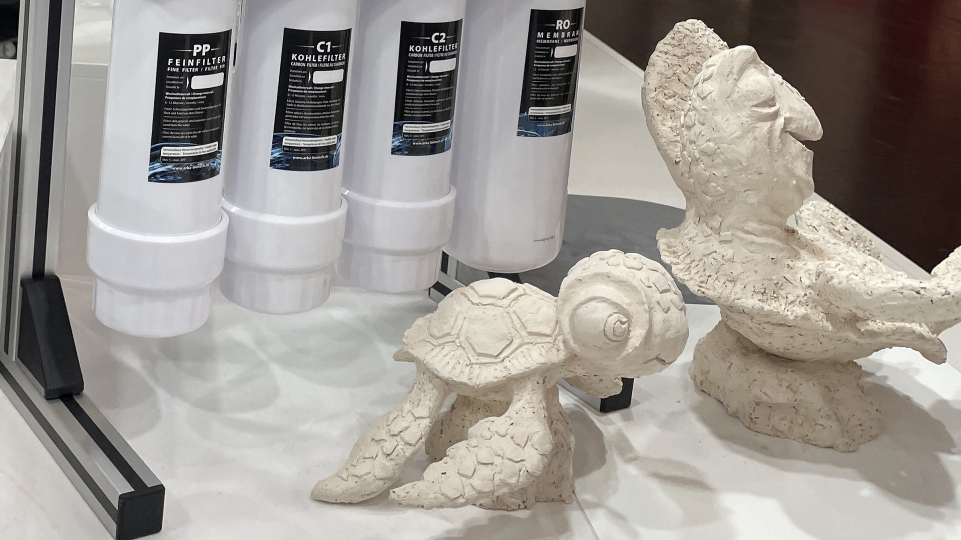 Natürlich hatte Arka so einiges mitgebracht, so dass der Stand auch mit den Produkten gut gefüllt war. Auf dem Stand waren dekorativ eine ganze Reihe von Riffkeramiken zwischen den anderen Produkten ausgestellt.